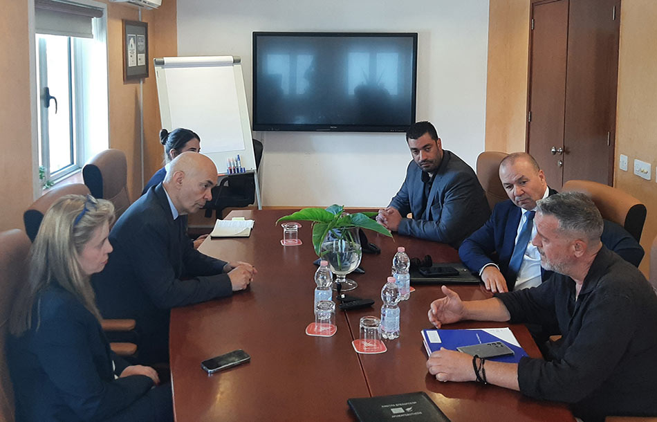 Τη Δευτέρα, 5 Μαΐου 2025, πραγματοποιήθηκε στα γραφεία του Εμπορικού και Βιομηχανικού Επιμελητηρίου Λάρνακας συνάντηση μεταξύ του Προέδρου του Ε.Β.Ε.Λ., Δρ. Νάκη Αντωνίου, και του Διευθυντή, κ. Χαράλαμπου Ανδρέου, με τον Υπουργό Μεταφορών, Επικοινωνιών και Έργων, κ. Αλέξη Βαφεάδη, και τη Γενική Διευθύντρια του Υπουργείου, Δρ. Μαρίνα Ιωάννου Χασάπη. Στη συνάντηση παρευρέθηκε επίσης ο Δήμαρχος Λάρνακας, κ. Ανδρέας Βύρας.